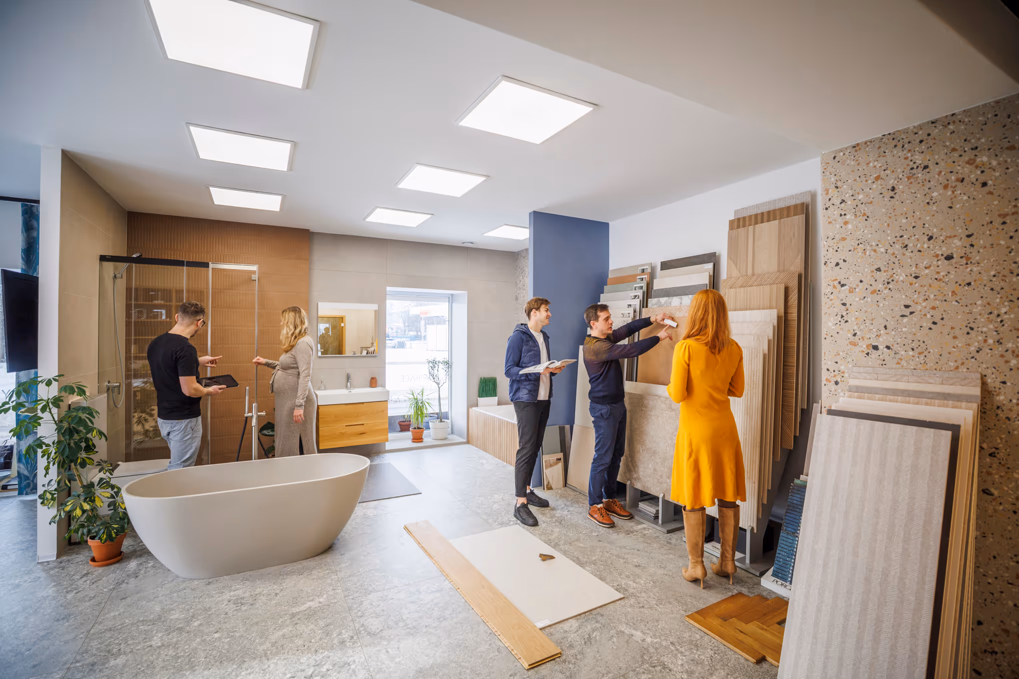 V materiálech se vyznáme, ať se jedná o obklady, dlažby, dřevěné podlahy, kuchyně a nábytek na míru nebo interiérové dveře a svítidla. Pro inspiraci si jezdíme do Itálie, Španělska a Německa, kde si na design a kvalitu potrpí.
